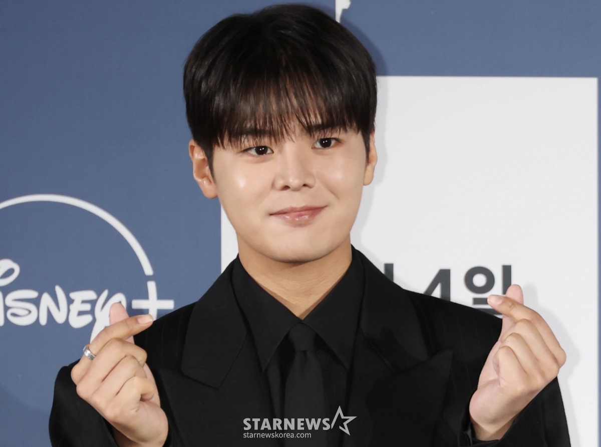 배우 려운이 27일 오전 서울 CGV용산아이파크몰에서 진행된 디즈니+ 오리지널 시리즈 '블러디 플라워' 제작발표회에 참석해 포즈를 취하고 있다.