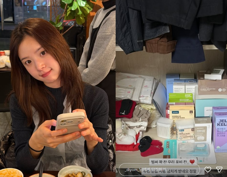 김지영은 27일 선물 받은 육아 용품들을 공개하고 "벌써 꽉 찬 우리 포비 칸. 주변 분들 사랑 넘치게 받네요 정말"이라고 감사함을 전했다.