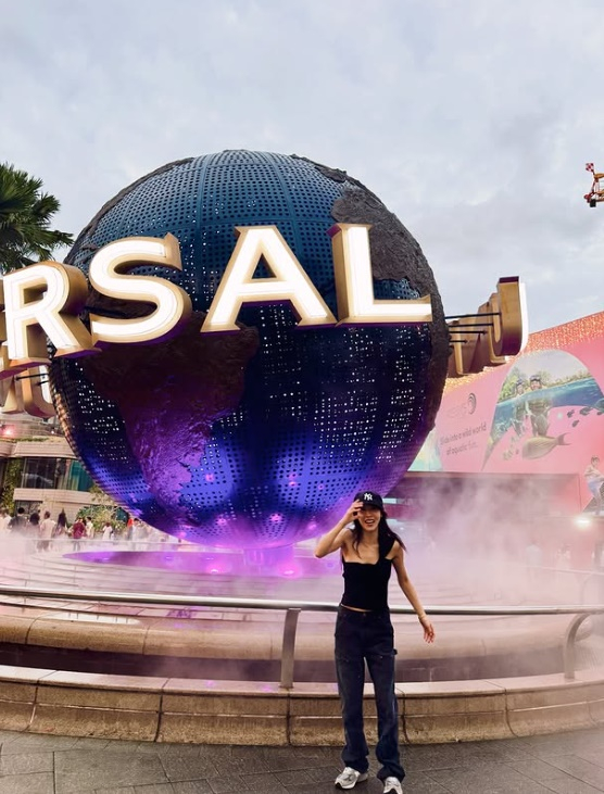 하지원은 27일 자신의 개인계정에 싱가포르 유니버설 스튜디오 앞에서 찍은 사진을 게재했다.