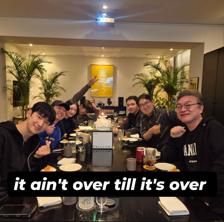 공개된 사진 속에는 '모범택시' 시리즈에 출연한 배우 이제훈 김의성 표예진 장혁진 배유람을 함께 감독, 작가가 모두 한자리에 모여 시선을 사로잡는다. 특히 'It ain't over till it's over'(끝날 때까지 끝난 게 아니다)라는 문구가 더해져 기대를 높였다.