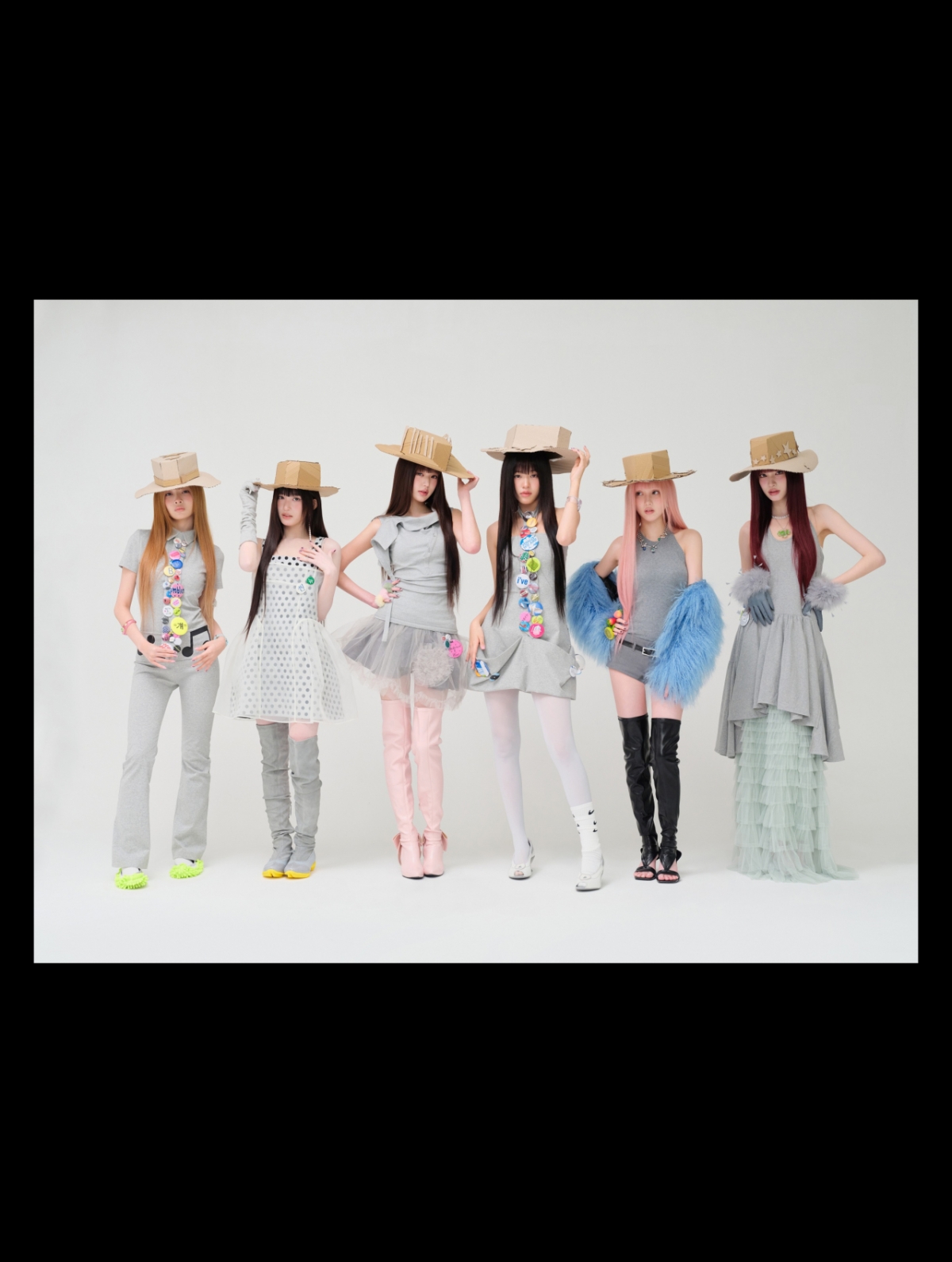 함께 공개된 단체 포토 속 아이브는 독보적인 비주얼 시너지를 발산했다. 멤버들은 각자의 얼굴이 프린팅된 유니크한 미니 드레스에 블랙 롱부츠를 매치해 통일감 있으면서도 힙한 무드를 완성했다. 이어진 사진에서는 커스텀 모자와 화려한 핀버튼 등을 매치해 아이브만의 키치한 매력을 발산하며 패션 소화력을 입증했다.