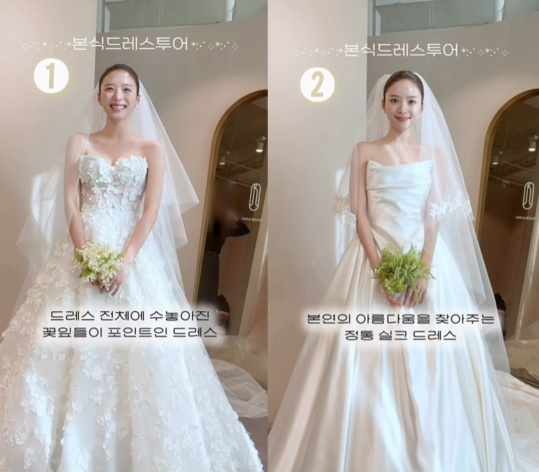 김지영은 30일 자신의 결혼식 본식에 입을 웨딩드레스 후보들을 공개했다.
