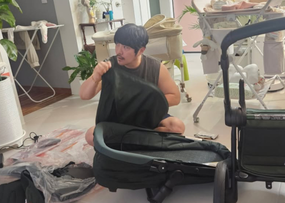 공개된 사진에는 KCM이 셋째 아들을 위해 유아차와 의자 등을 조립하는 모습이 담겨 있다.