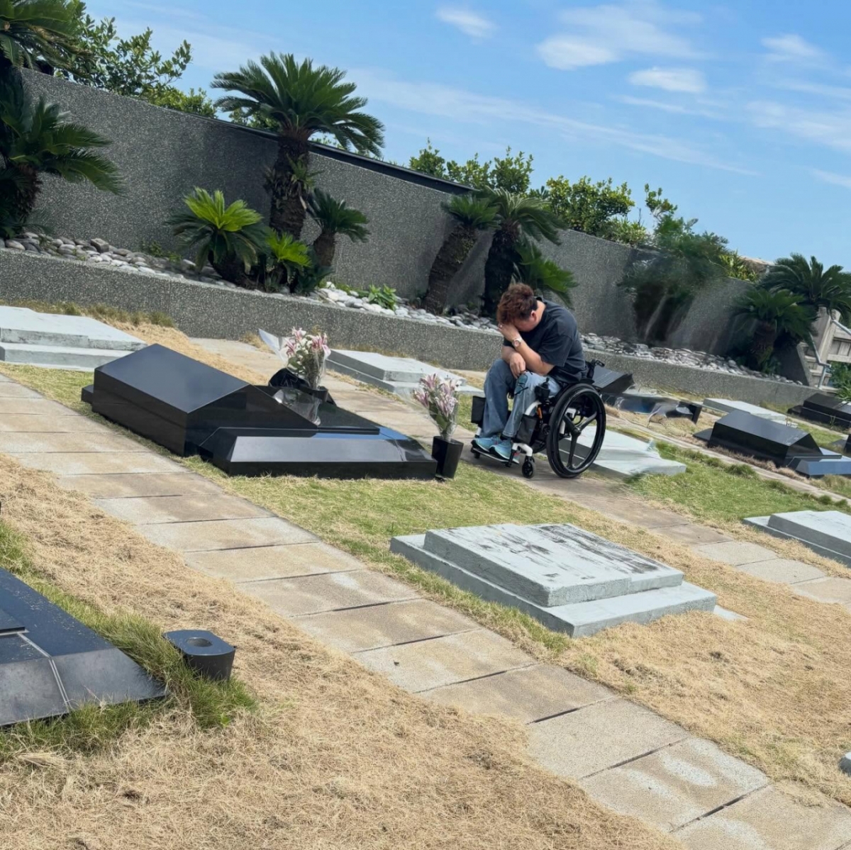 강원래는 4일 새벽 자신의 인스타그램에 강원래의 사진을 공개했다. 여기엔 지난해 2월 2일 서희원 사망 이후 매일 같이 고인의 묘지를 찾고 있는 구준엽의 모습이 담겼다.