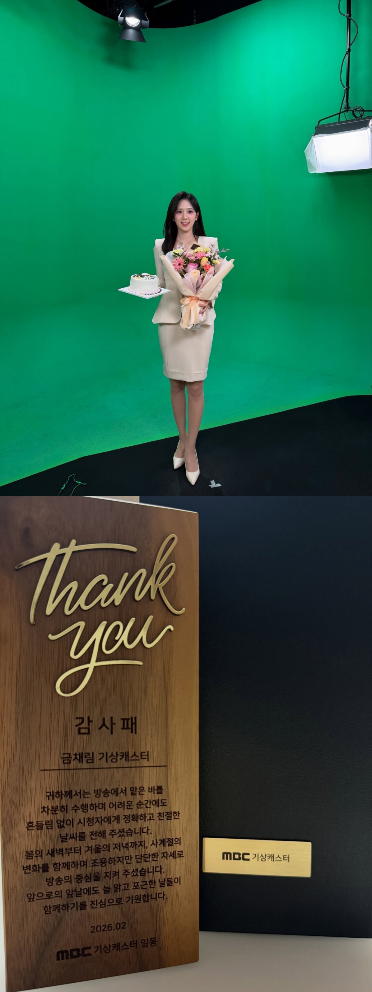 이와 함께 금채림은 MBC 기상캐스터 일동으로부터 받은 '감사패' 인증샷을 공개하기도 했다.