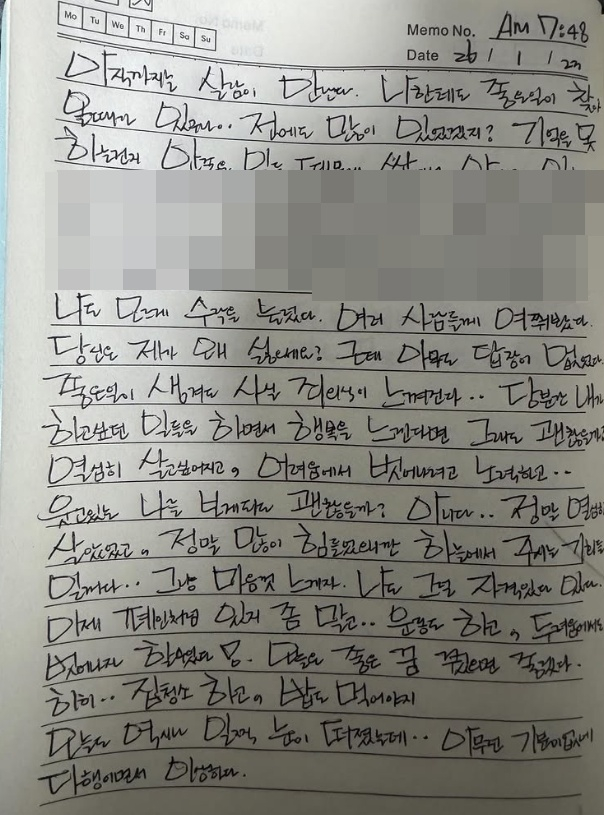 이에 네티즌들은 "힘내세요 파이팅", "외모도 마음씨도 글씨도 천사예요", "자책하지 마세요", "저도 안 좋은 일로 인해 많이 힘들었지만 좋은 방향으로 나아가려고요" 등 응원의 메시지를 전했다.