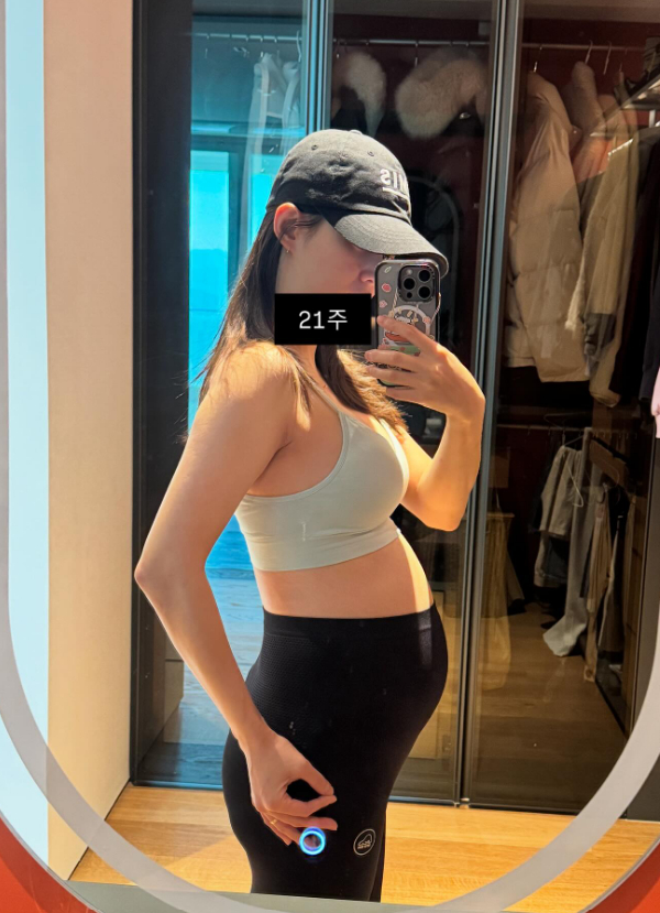 공개된 사진 속 임신 21주 차인 남보라는 거울 앞에 서서 편안한 차림으로, D라인을 공개했다. 그는 눈에 띄게 불러온 배를 보고 놀란 듯한 반응을 보였다.