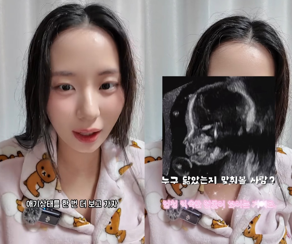 이날 그는 "얼마 전에 정밀검사를 했다. 초음파를 봤는데 익숙한 얼굴이 보이더라. 원래 이 정도 주수에 얼굴 형태가 보이나. 근데 누구를 똑 닮았다"라고 말했다.