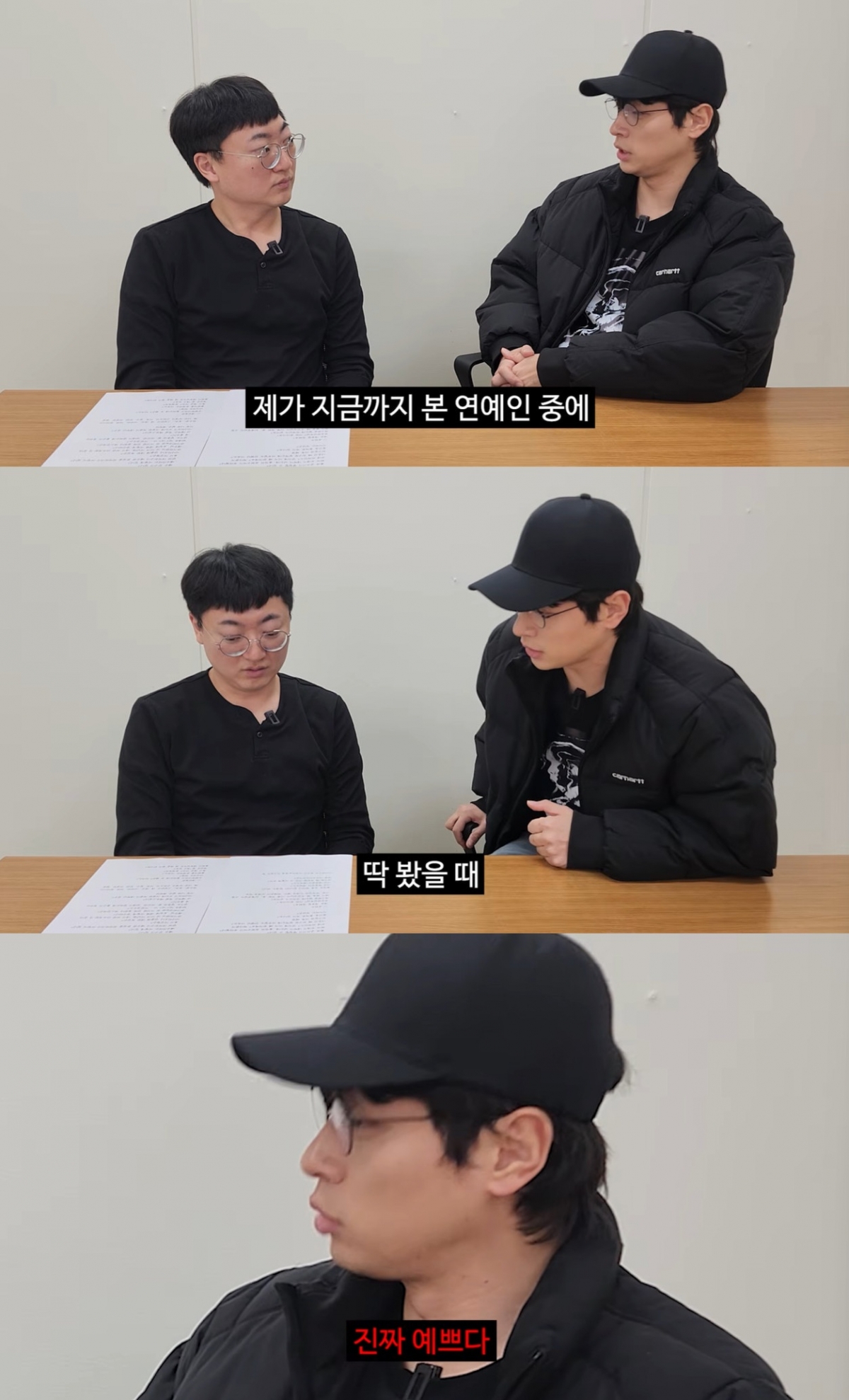 이날 충주맨은 "연기를 하다 보니 디렉팅하는 감독이 마음에 안 들면 어떡하나"라고 물었다. 박정민은 "마음에 들지 않을 수 있다. 가끔 그럴 때 있다. 근데 해줘야 한다. 그게 저 사람이 원하는 그림이니까"라며 "가끔 그런 생각 한다. 내가 망하냐. 안 좋은 생각 들 때도 있는데 그 순간 지나면 풀린다"라고 전했다.