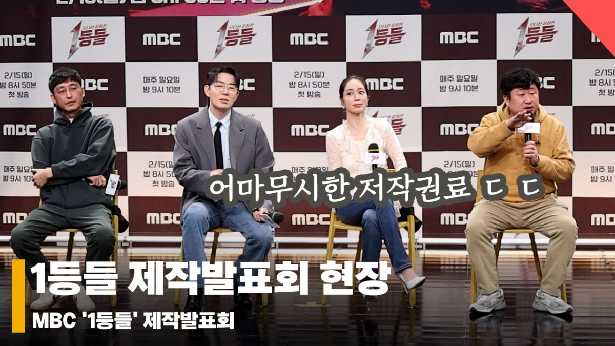 연예방송'저작권료만 어마 어마~' 1등들 제작발표회 [영상]발행 : 2026.02.11 ・ 11:37조회수 :오찬우 기자11일 오전 서울 마포구 상암동 MBC에서 예능 '1등들' 제작발표회가 열렸다.이날 이민정, 붐이 참석했다. 2026.02.11<저작권자 © 스타뉴스, 무단전재 및 재배포 금지>브리핑추천 기사오찬우 기자기자홈좋아요연예-방송의 인기 급상승 뉴스연예-방송의 최신 뉴스AD