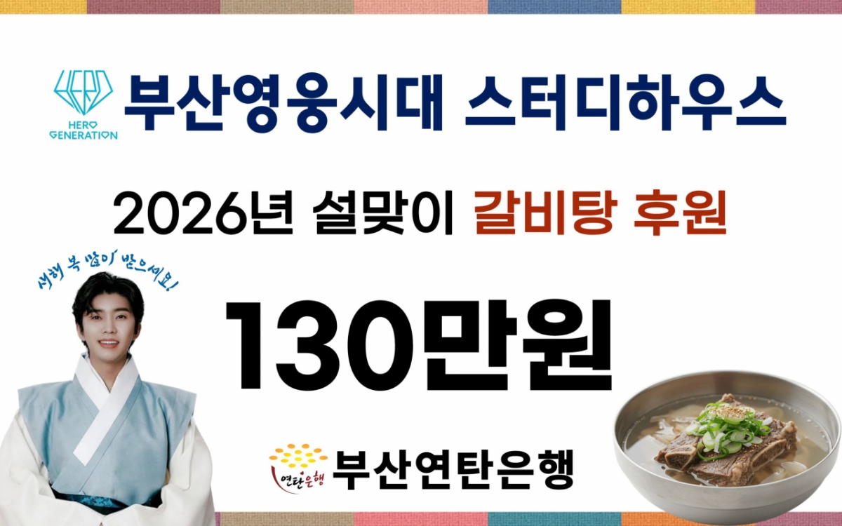 임영웅 팬클럽 부산영웅시대의 '스터디하우스'는 최근 부산연탄은행 밥상공동체(대표 강정칠 목사)에서 53회차 도시락 나눔 봉사를 했다. 설 명절을 맞아 130만원을 후원하고 갈비탕을 대접했다.