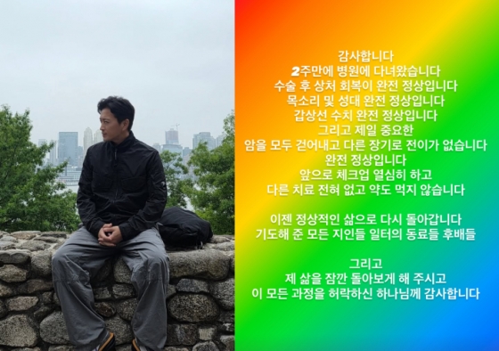 이어 "갑상선암이 사실 그렇게 위험한 암은 아니지만 또 어떻게 보면 위험하지 않은 암은 아닙니다. 그래서 막상 몸에 이런 것이 생기면 사람은 걱정하고 긴장하기 마련입니다 저 또한 그랬으니까요"라며 "그러니 여러분 적어도 이 글을 읽는 우리 팬 지인들은 주변 이웃들이 아주 작은 병에 걸려도 위로해 주고 걱정해 줍시다"라고 이었다.