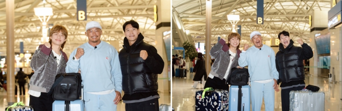 특히 추성훈, 김종국, 대성은 출발 직전 출국장 한복판에서 '상남자 브로맨스'를 증명하는 다양한 포즈로 기대감을 높였다. 입을 크게 벌린 채 장난기가 가득한 개구쟁이 포즈부터 환한 미소를 드리운 함박웃음 포즈, 주먹을 불끈 쥔 파이팅 포즈 등 찐형제처럼 꼭 닮은 압도적 자태로 현장의 열기를 끌어올렸다.