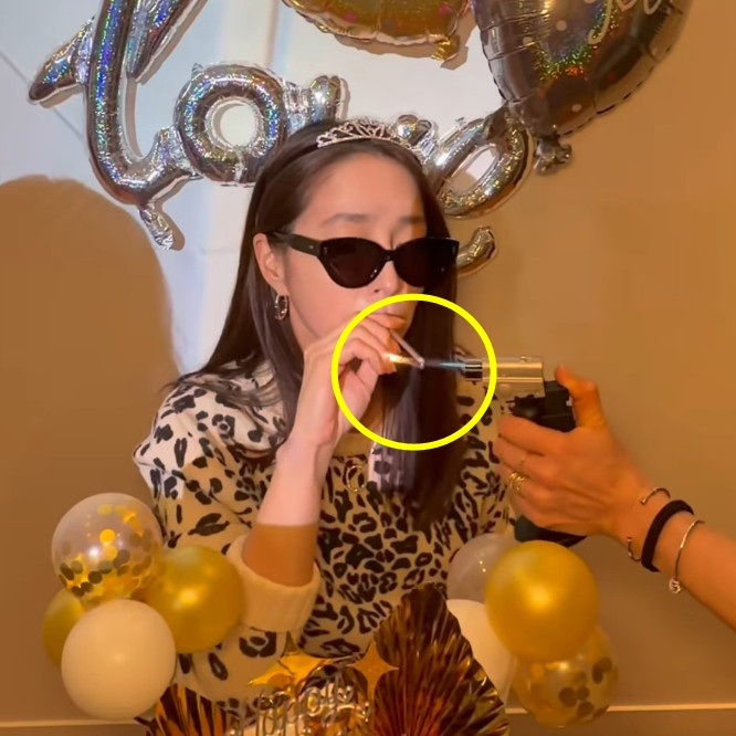 이와 함께 공개한 영상엔 이민정이 독특한 방식으로 생일 초를 켜는 모습이 담겼다. 초를 입에 물고 불을 붙이며, 마치 '흡연'을 하는 듯한 장면을 연출한 것이다. 여기에 선글라스를 슬쩍 내려 카리스마 넘치는 눈빛을 발산, 멋스럽게 영상을 마무리 지었다.