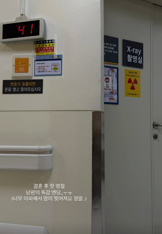 김지영은 16일 자신의 SNS에 "결혼 후 첫 명절. 남편의 독감 엔딩. 너무 아파해서 마음이 정말 찢어진다"는 글을 게재했다.