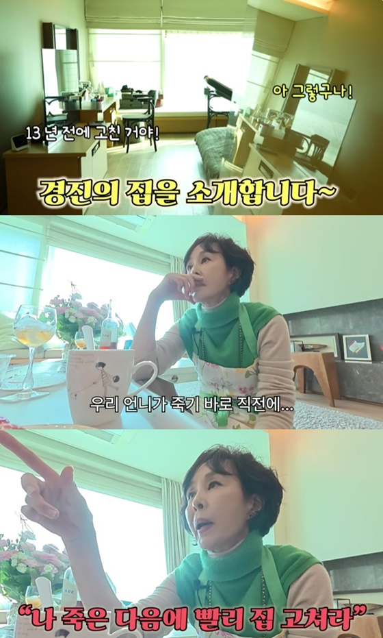 또 그는 깔끔하게 해놓고 사는 이유에 대해 "우리 큰언니가 일찍 갔다. 우리 언니가 죽기 바로 직전에 '너 나 죽은 다음에 빨리 집 고쳐라. 좀 있으면 못 고친다' 계속 그러더라"라고 말했다.