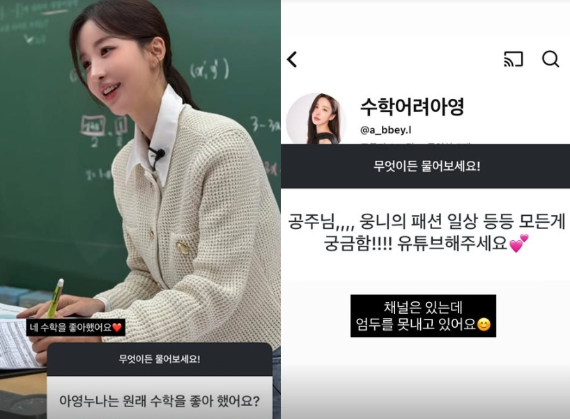 또한 이아영은 "원래 수학을 좋아했다"라며 "유튜브 채널은 있는데 엄두를 못내고 있다"라고 답했다.