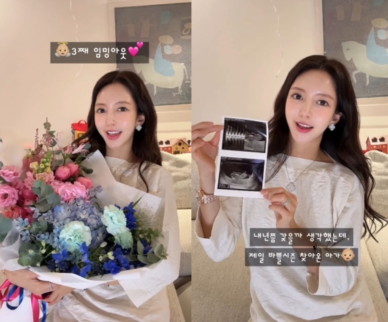 이어 "셋째라 그런가 아기도 주수에 비해 크고 배도 빨리 나오고, 입덧은 4주 차부터 정말 어나더 레벨. 술 한 트럭 마신 다음 날 배 위에 있는 것 같은 속 울렁임이 계속되고, 입덧약도 큰 도움이 안 될 때가 많다. 그래도 이 모든 게 뱃속에서 잘 자라고 있다는 증거니까 엄마는 꾹 참고 열심히 버티고 있다"라고 전했다.