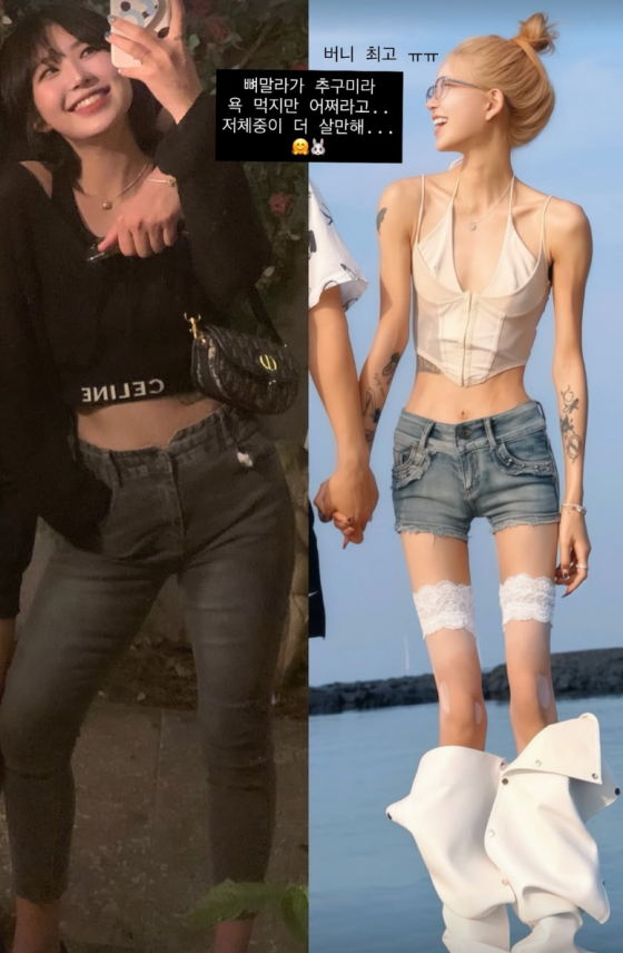 최준희는 22일 자신의 SNS에 "뼈말라가 추구미라 욕 먹지만 어쩌라고. 저체중이 더 살 만하다"라는 글과 함께 과거, 현재 비교 사진을 게재했다.