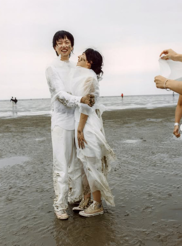 공개된 사진 속 김한주는 갯벌에서 웨딩드레스를 입은 연인과 함께 팔짱을 끼고 있다. 두 사람의 웨딩 화보는 독특한 콘셉트로 이목을 사로잡는다.