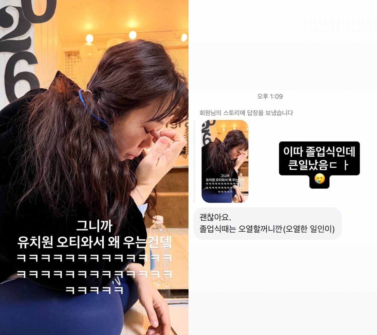 26일 인테리어 디자이너 겸 방송인 제이쓴은 개인 SNS에 "그니까 유치원 OT 와서 왜 우는 건데"라며 눈물을 흘리고 있는 홍현희의 사진을 게재했다.