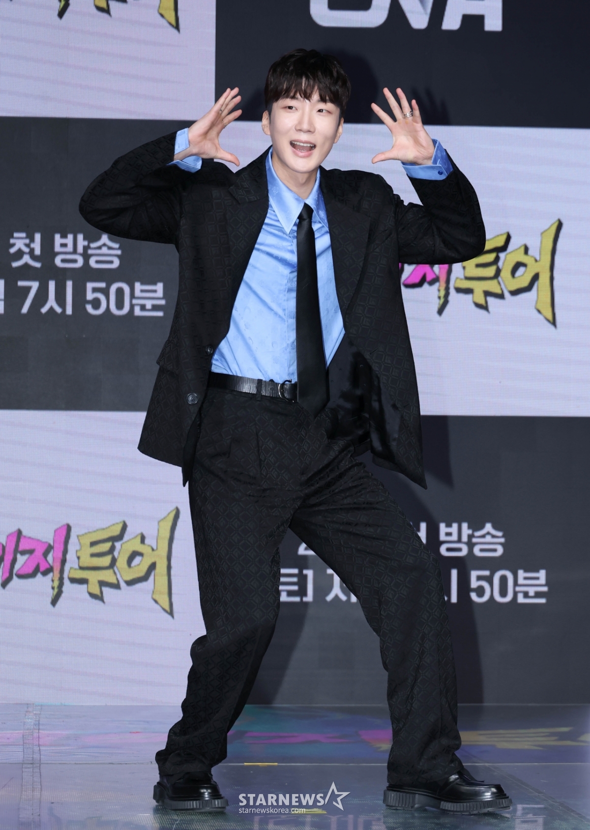 가수 이승훈이 27일 오후 서울 마포구 상암동 쇼킹케이팝센터에서 진행된 ENA 예능 '크레이지 투어' 제작발표회에 참석해 포즈를 취하고 있다.