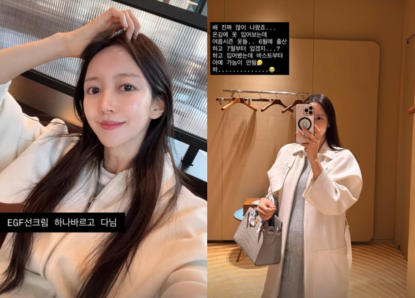 이어 "셋째라 그런가 아기도 주수에 비해 크고 배도 빨리 나오고, 입덧은 4주 차부터 정말 어나더 레벨. 술 한 트럭 마신 다음 날 배 위에 있는 것 같은 속 울렁임이 계속되고, 입덧약도 큰 도움이 안 될 때가 많다. 그래도 이 모든 게 뱃속에서 잘 자라고 있다는 증거니까 엄마는 꾹 참고 열심히 버티고 있다"라고 전했다.