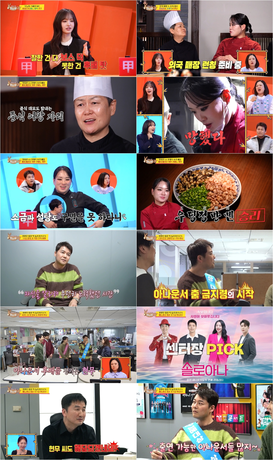 전현무는 '사당귀' 제작진을 찾아 떡을 전달하며 "덕분에 상을 받게 됐다"라며 감사의 말을 전했다. 전현무는 입사 동기인 '더 시즌즈' 손자연 PD에게 "노래 잘하는 아나운서들도 있으니 잘 부탁한다"고 당부했다. 아나운서 시절 '1박2일' 출연이 꿈이었다던 전현무는 '1박2일' 회의실도 찾았다. 전현무는 '1박2일' 주종현 PD와 반갑게 인사를 나누며 향후 특집 출연을 약속했다. 그러면서 "후배 아나운서들 출연도 옵션으로 고려를 해 달라. 올해 북중미 월드컵 등 '스포츠의 해'이니 남현종도 한번 써 봐달라"고 후배들의 매력을 적극적으로 어필했다.