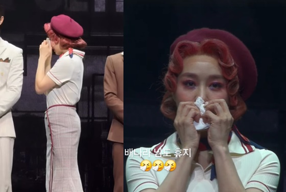 그룹 핑클 출신 뮤지컬 배우 옥주현이 무대에서 눈물을 보였다.