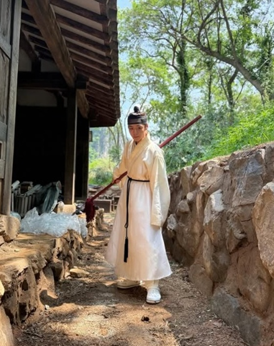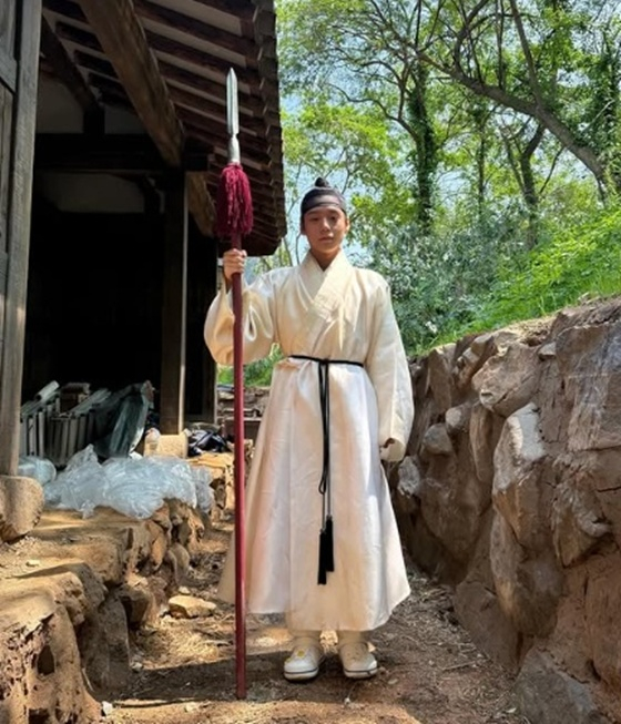 공개된 사진 속에는 흰색 도포를 입고 상투를 튼 박지훈의 모습이 담겼다. 그는 늠름한 표정으로 창을 들고 카메라를 응시하고 있다. '왕과 사는 남자' 단종을 그대로 옮겨놓은 듯한 비장함이 느껴진다.