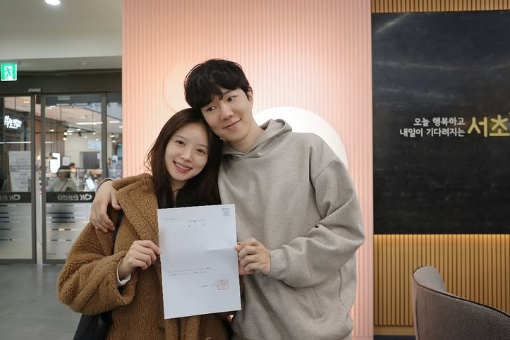 김지영은 지난 3일 자신의 계정에 "오늘부로 법적으로 기혼자가 되었습니다. 남편과 혼인신고 클리어♥"라며 사진을 올렸다.