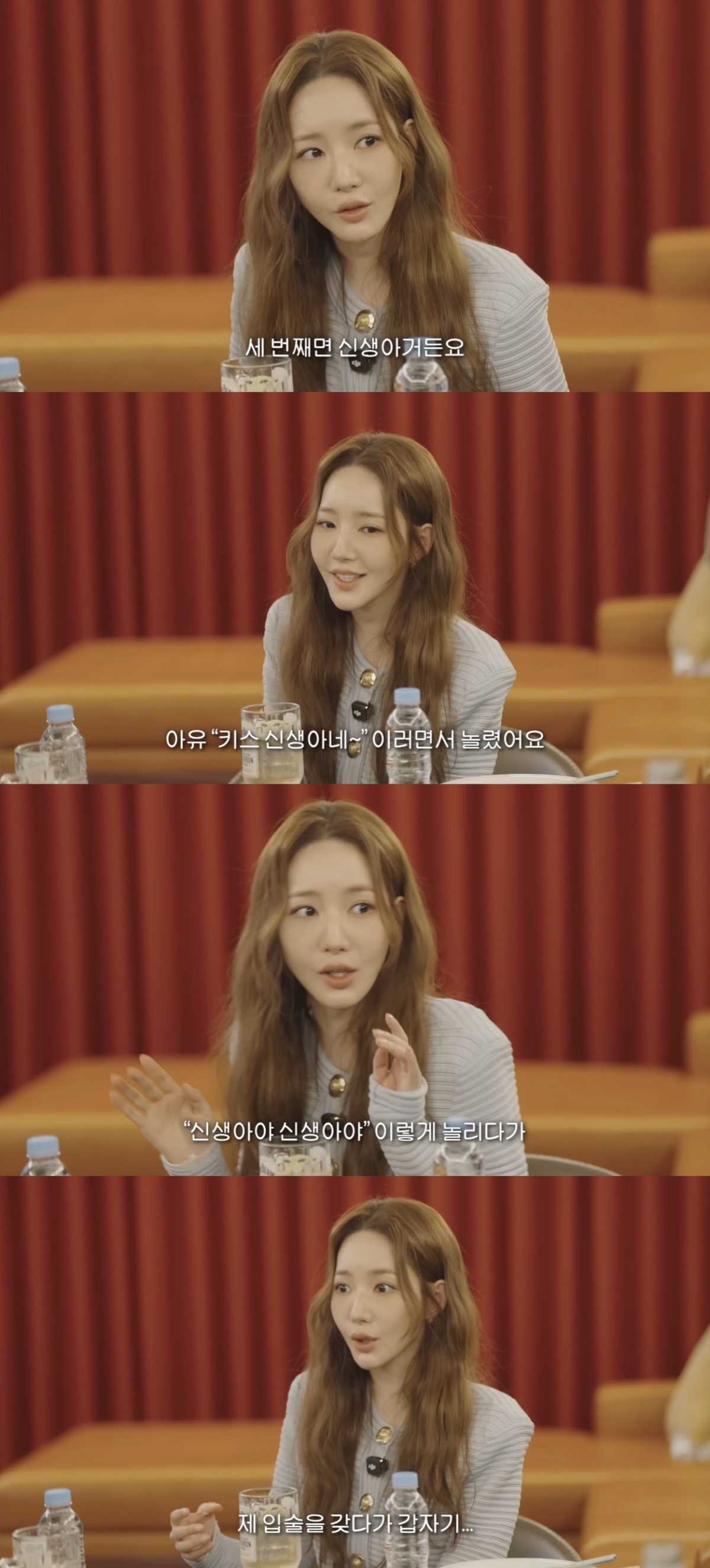 이날 박민영은 "(위하준이) 워낙 로맨스를 별로 안 해봤다더라. 키스신이 있는데 두 번째인가 세 번째라더라. 아무래도 난 로맨스를 많이 해봤다고 보니까 세 번째면 신생아다. 그래서 '키스 신생아네'라고 놀렸었다"라고 말했다.