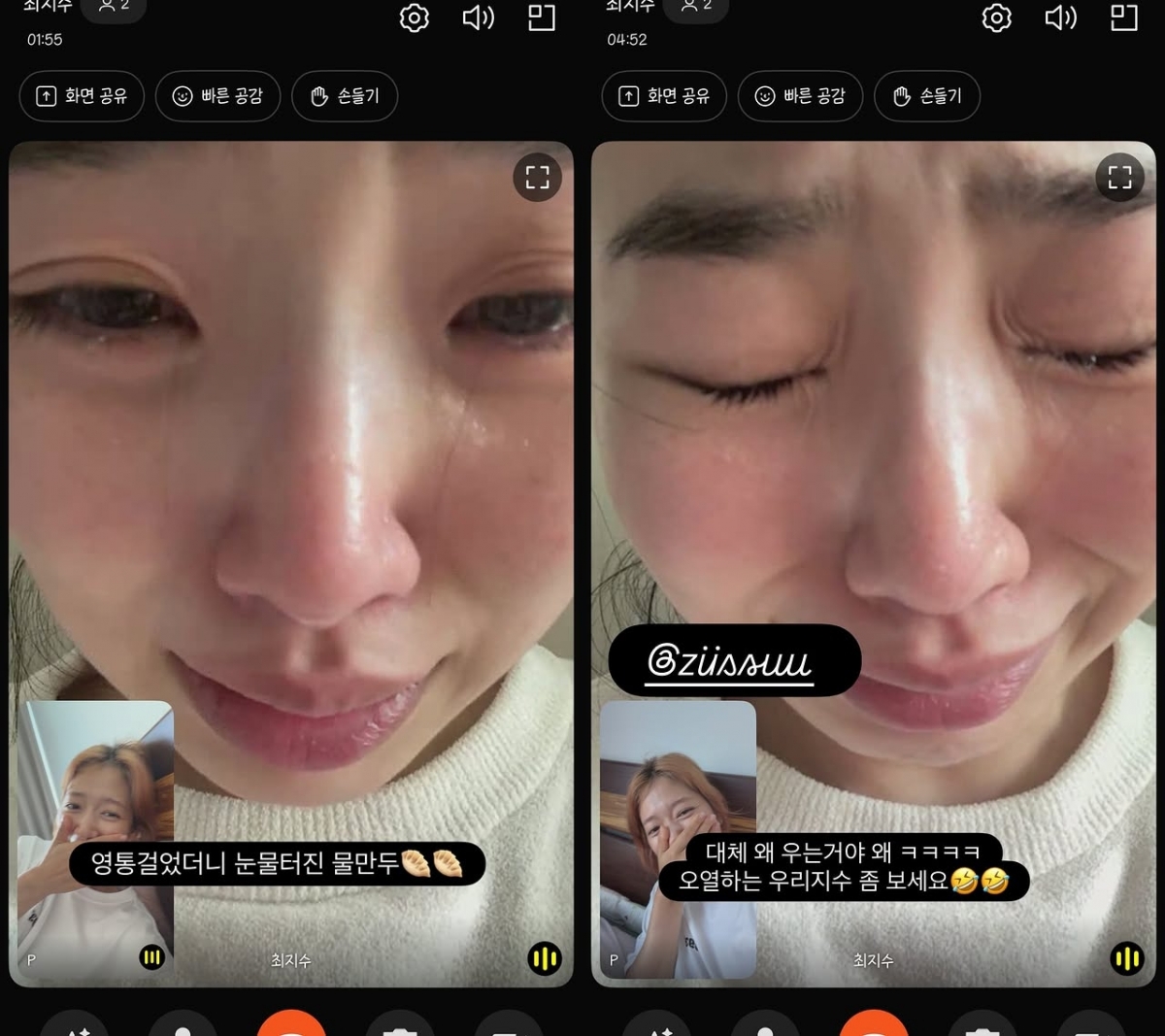 공개된 사진 속에는 박신혜와 영상 통화 중 눈물을 흘리는 최지수의 모습이 담겼다. 이를 바라본 박신혜는 손으로 입을 가린 채 미소 짓고 있어 눈길을 끈다.