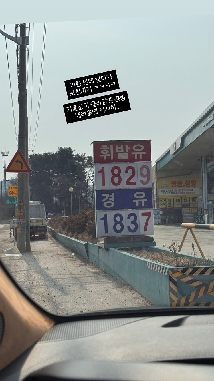 박성광은 11일 자신의 계정에 "기름 싼 데 찾다가 포천까지. 기름값이 올라갈 땐 금방 내려올 땐 서서히..."라며 사진을 올렸다.
