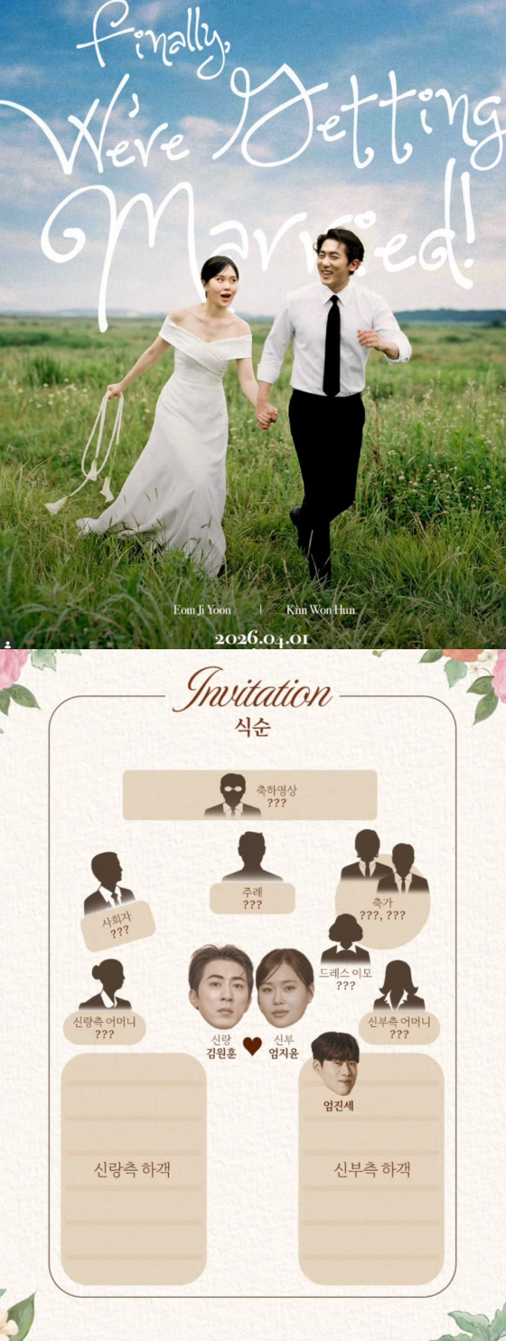 더불어 공개된 '식순' 이미지에는 신랑 김원훈, 신부 엄지윤 그리고 조진세를 제외하고는 모든 인물의 이름이 적혀 있지 않아 궁금증을 자아냈다.