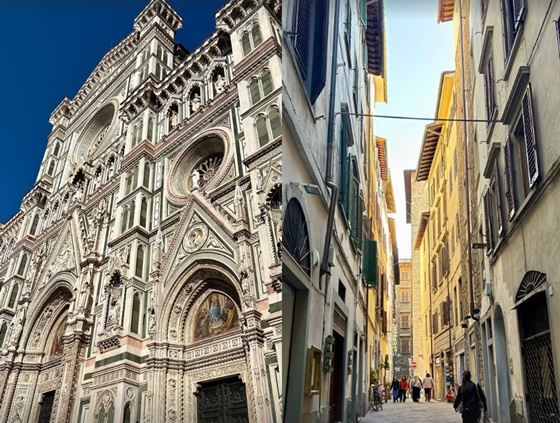 또 다른 사진에서는 피렌체 특유의 좁고 고풍스러운 골목길 풍경이 포착됐다. 따뜻한 햇볕이 내리쬐는 건물 사이로 현지인과 관광객들이 자유롭게 거니는 여유로운 분위기가 담겼다.