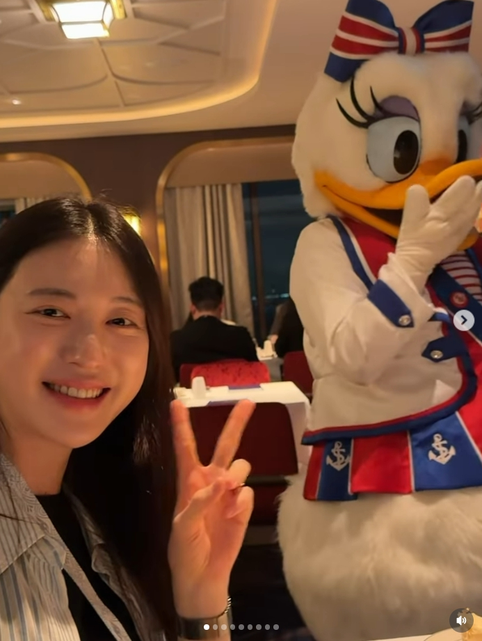 사진 속 유혜주는 싱가포르에서 운항 중인 디즈니 크루즈를 타고 행복한 시간을 보내고 있는 모습. 디즈니 속 캐릭터 인형과 함께 아름다운 미소를 짓고 있는 유혜주는 카메라를 향해 브이 포즈를 취하며 훈훈한 분위기를 자아냈다.
