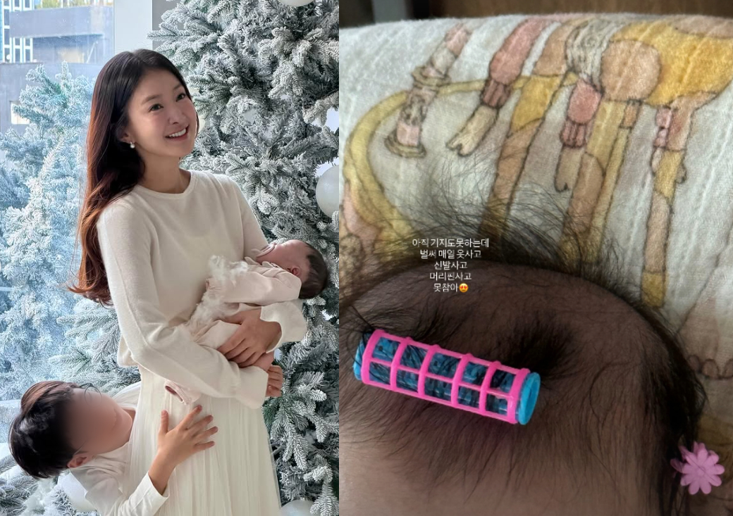 이어 딸의 머리에 헤어롤과 머리핀을 한 귀여운 모습과 함께 "아직 기지도 못하는데 벌써 매일 옷 사고, 신발 사고, 머리핀 사고 못 참아"라고 전했다.