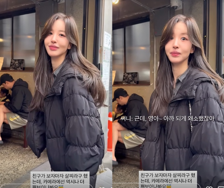 영상에서 이아영은 "친구가 보자마자 살찌라고 했는데 카메라에선 역시나 더 쪄보이나봐요"라고 전했다.