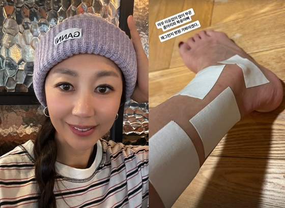 공개된 사진에는 종아리와 복숭아뼈에 붕대를 한 전미라의 다리 모습이 담겼다.