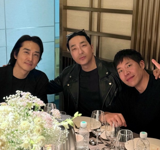 공개된 사진 속에는 송승환, 태원석과 어깨동무하고 있는 하도권의 모습이 담겼다. 이들은 이민우 결혼식에 참석해 자리를 빛냈다.