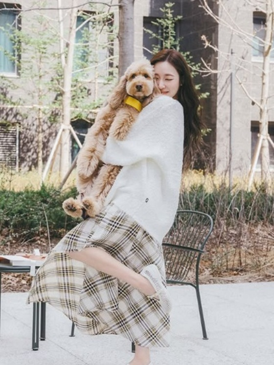 공개된 사진 속에는 반려견과 함께 여유로운 시간을 보내고 있는 티파니의 모습이 담겼다. 그는 화이트 상의와 체크 스커트를 매치한 스타일링으로 청순하면서도 단아한 분위기를 자아냈다.
