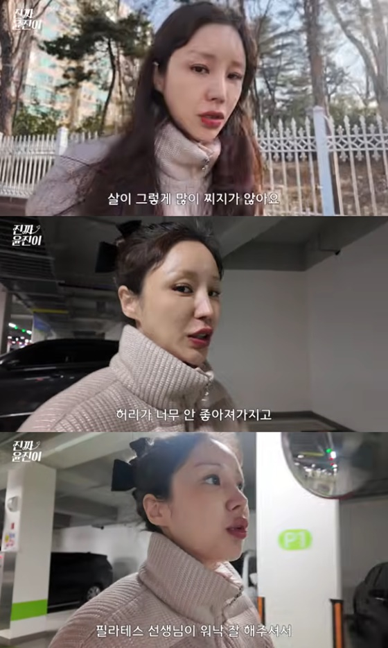 윤진이는 허리 치료를 받으러 가기도 했다. 그는 "아기를 많이 안다 보니까 허리가 너무 안 좋아졌다. 허리 재활을 필라테스 선생님이 워낙 잘해주셔서 허리를 늘리러 간다"고 밝혔다. 허리 치료 후에는 헬스장에 들러 운동을 하기도 했다.