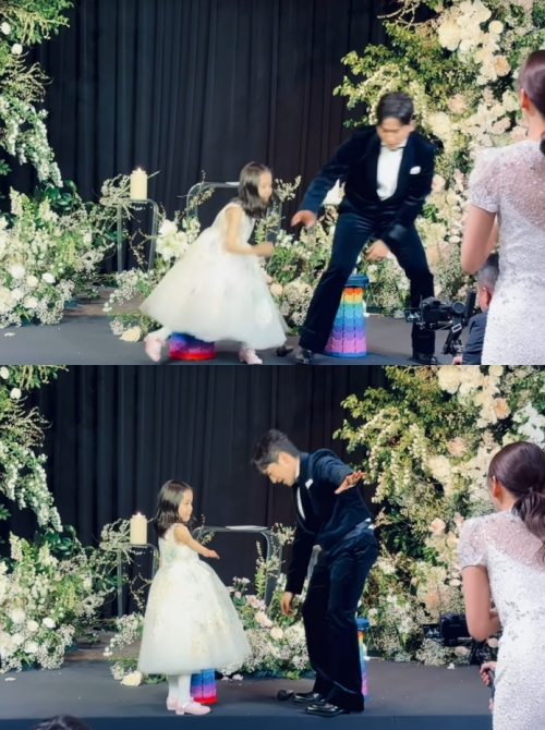 공개된 영상 속에는 결혼식 2부에 첫째 딸과 신화의 '와일드 아이즈(Wild Eyes)'에 맞춰 의자 춤을 선보이는 이민우의 모습이 담겼다. 딸은 "아빠 노래 하나 불러줘"라고 말했고, 두 사람의 모습에 하객들은 환호했다.