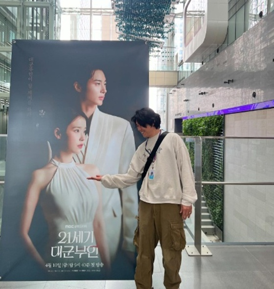 공개된 사진 속에는 '21세기 대군부인' 포스터 옆에 선 이상순의 모습이 담겼다. 이상순은 아이유의 얼굴을 가리키며 환한 미소를 짓고 있다.
