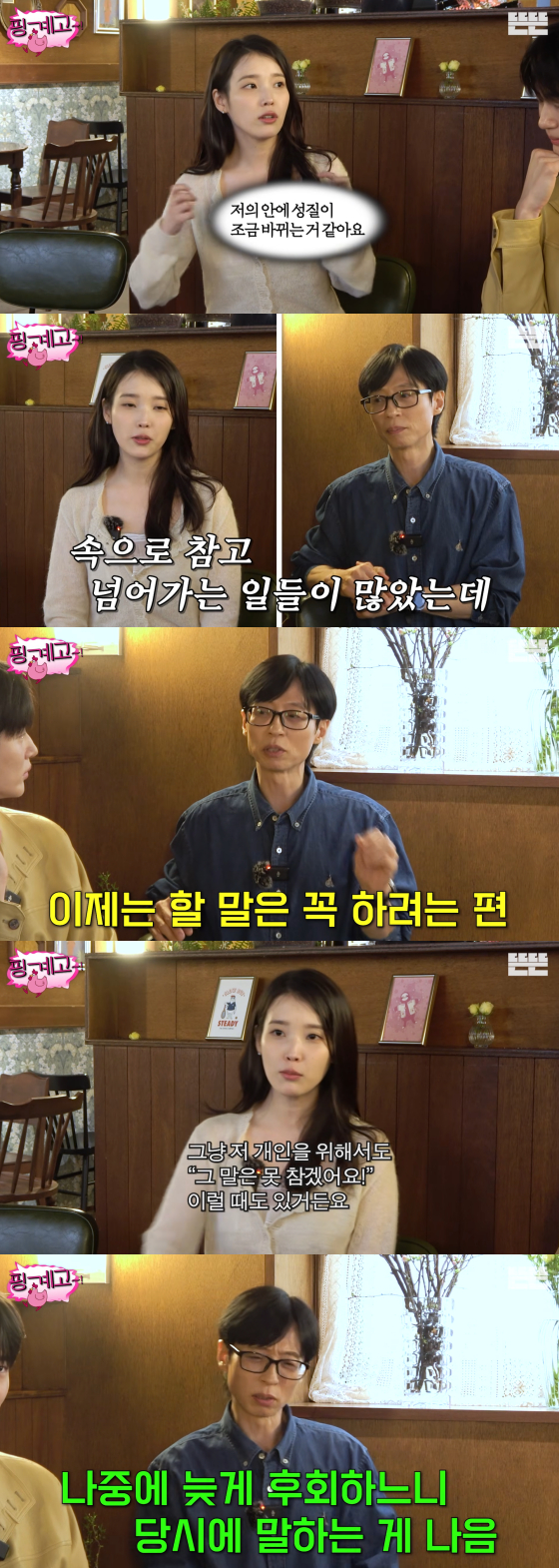 이날 아이유는 "30대 중반이 되니까 제 안의 성질이 바뀌는 듯한 느낌이 든다. 무슨 말을 하고 싶으면 잘 못 참겠다"고 말했다.