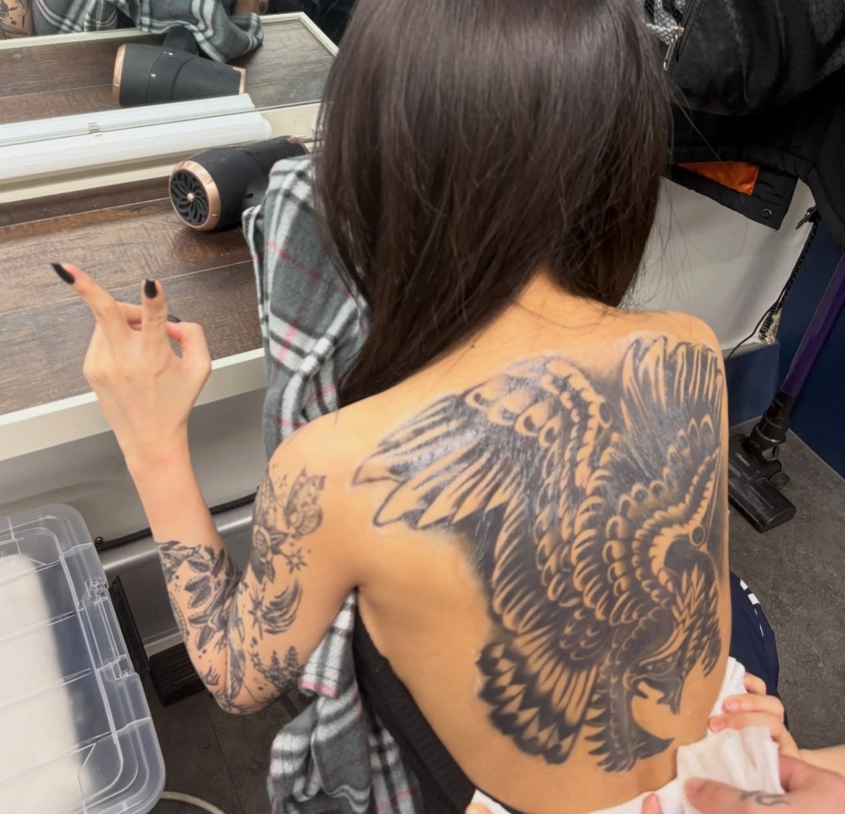 배우 강민아(29)가 '사냥개들2' 속 '전신 문신' 비하인드 컷을 공개했다.