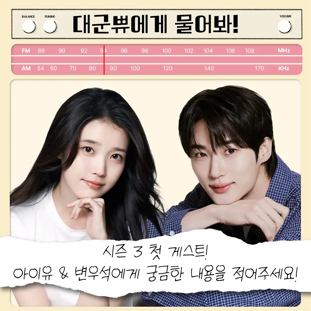 아이유와 변우석은 MBC 새 금토드라마 '21세기 대군부인' 주역으로 유재석의 '핑계고'에 이어 '유인라디오' 시즌3에 출격, 홍보 활동에 박차를 가한다. 장도연의 '살롱드립' 녹화도 완료한 이들이다.