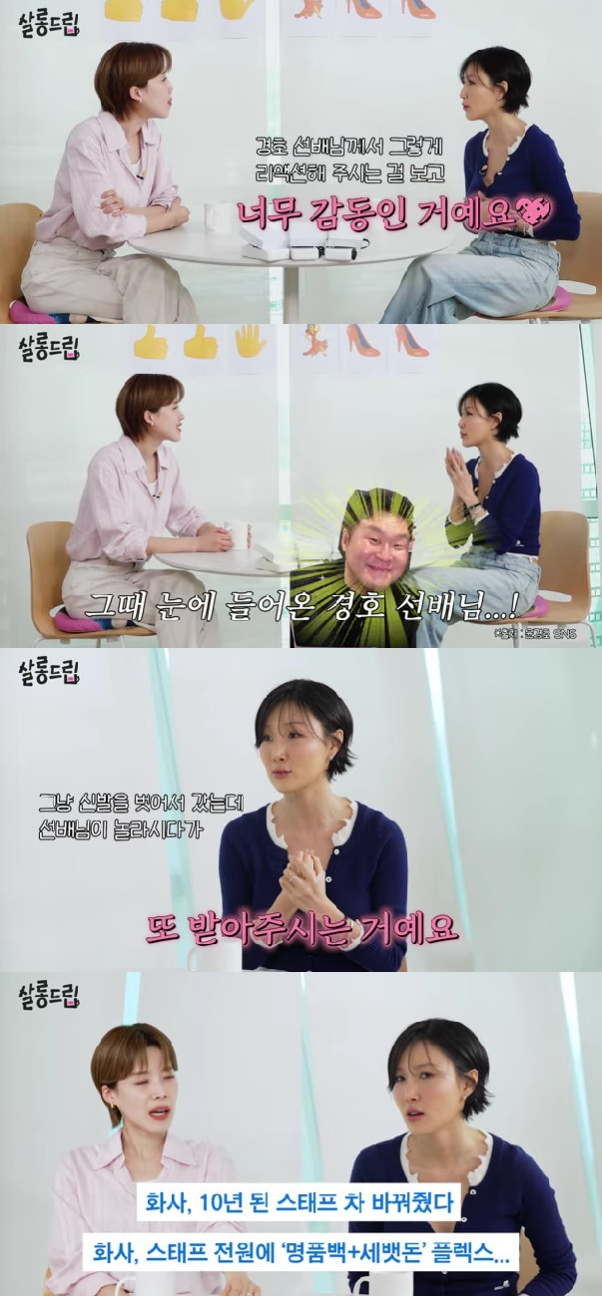 이어 "그러다가 핑계고 시상식에서 만났고, 노래에 대한 사전 협의가 없었다. 너무 긴장했는데 (윤) 경호 선배님이 눈에 딱 들어왔다. 놀라시다가 그걸 받아주셔서 너무 완벽했다"며 "그 촬영 끝나고, 집 가는 길이 그렇게 신날 수가 없었다. 송이버섯도 너무 감사하니까 뭐라도 드리고 싶었다"고 이야기했다.