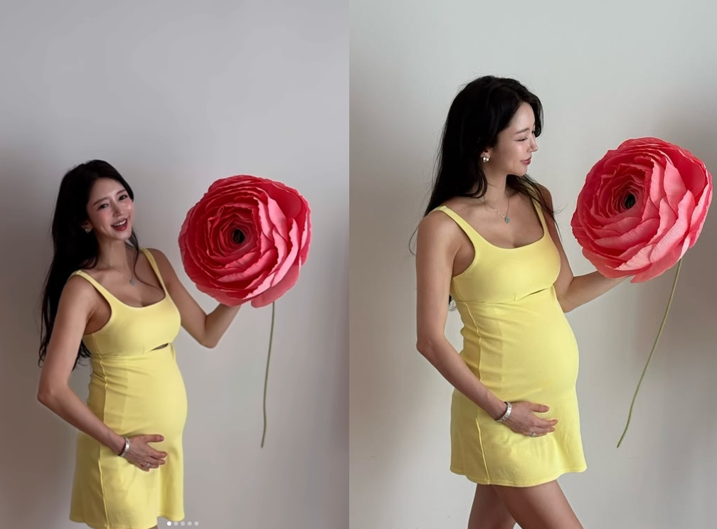 이어 "안찍고 넘어가기엔 셋째가 좀 커서 언니오빠들은 다 만삭사진 있는데 자기는 왜 없냐 할까바......친구들이랑 여행간 김에 찍어본 사진"이라며 "만삭사진 찍으라고 꽃까지 준비해줬지요. 친구들아 고마워 덕분에 만삭 건졌어"라고 전했다.